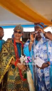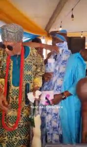 In a shocking turn of events, Oba Kolawole Sowemimo, the Olu of Owode-Egba in Ogun State, is under intense scrutiny after a video surfaced showing him openly abusing the country’s currency during his wife’s 60th birthday celebration.
