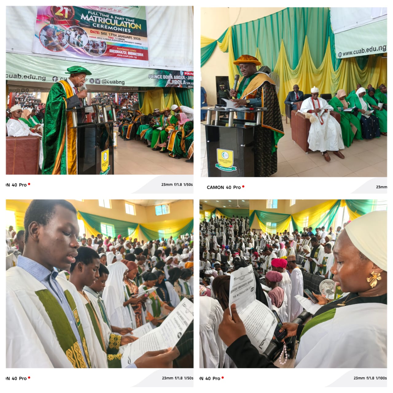 A total of 567 full-time students were matriculated across six colleges — Bola Ajibola College of Law, College of Arts, Social and Management Sciences, College of Health Sciences, College of Natural and Applied Sciences, College of Information and Communication Technology, and College of Environmental Sciences — while 270 part-time students were also admitted.