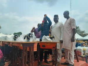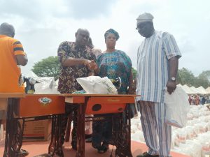 Accompanied by his wife, Olufunsho, Gbenga Daniel distributed food supplies and skill equipment to the people of the Ogun East Senatorial District as part of his outreach efforts.