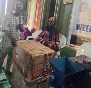 The distribution ceremony, held at the Egba Muslim Central Mosque in Abeokuta, witnessed the allocation of various essential items including sewing machines, generators, grinding machines, industrial equipment, and freezers.