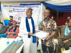 The Owu Empowerment Foundation, renowned for its dedication to uplifting the people of Owu Kingdom, distributed a range of essential items including 50 laptops, 20 deep freezers, 20 grinding machines, generators, hair dryers, and sewing machines at the Owu Palace in Abeokuta.