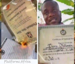In a shocking act of frustration and disappointment, a Graduate of Ajayi Crowther University, Olutimain Ilenre, took to social media to burn his academic certificates, including his Bachelor of Arts and National Youth Service Corps certificates among others, as a symbolic protest against the prolonged unemployment he has faced for over 13 years.