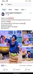 The announcement was made on Eniola’s Facebook page, where she shared her passion for herbal products and her dedication to the ‘Agbo-A-Thon’ challenge, for which she has secured approval from the Guinness World Record team.