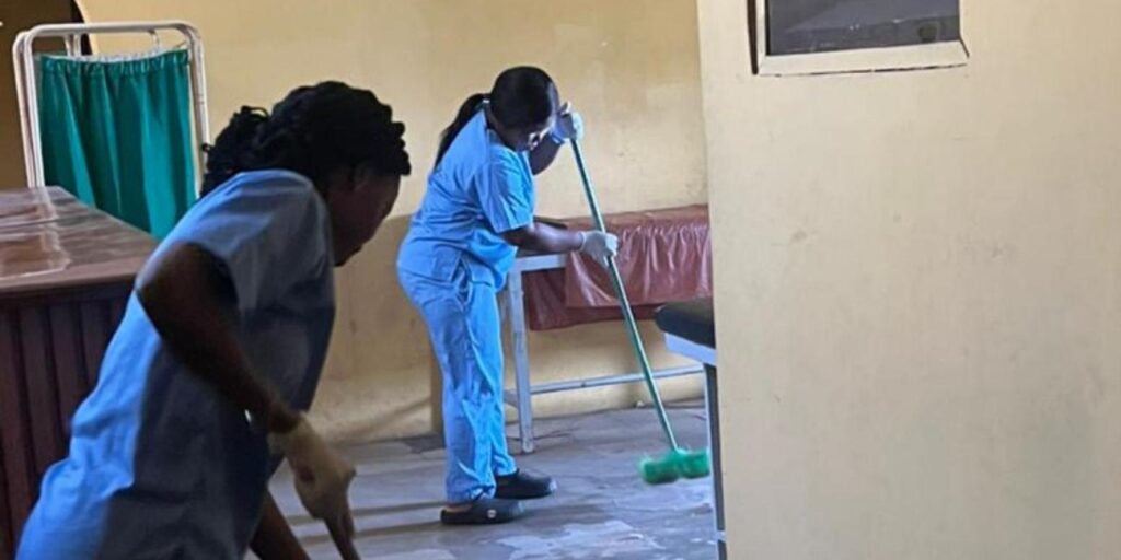 Meanwhile, a photograph circulating on social media showing nurses cleaning sections of the hospital has fuelled public outrage, highlighting growing frustration among healthcare workers over poor working conditions and role encroachment in public health facilities.