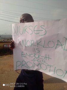 The protest was marked by peaceful demonstrations with nurses carrying placards bearing messages like “Stop selective promotion” and “Nurses’ lives matter.”