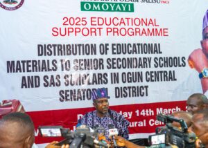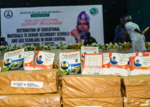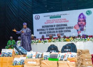 Additionally, he has provided textbooks, past examination questions, exercise books, mathematical sets, and school bags to all secondary schools in Ogun Central.