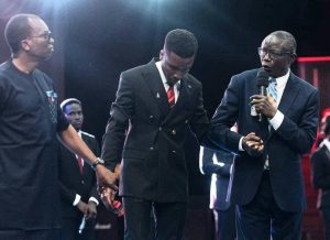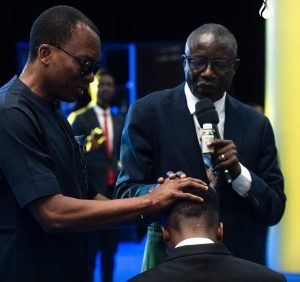 The event took a deeply spiritual turn when Bishop Francis Wale Oke, President of the Pentecostal Fellowship of Nigeria (PFN), ordained David Achudume, the son of Apostle Lawrence and Reverend Fola, in a surprise ceremony.