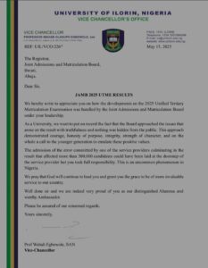 The University of Ilorin, where Prof. Oloyede previously served as Vice Chancellor, echoed similar sentiments in a letter addressed to the JAMB Registrar.